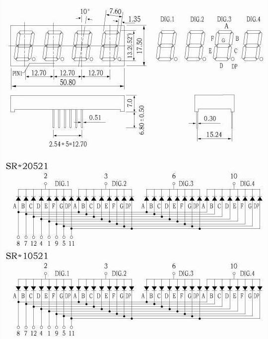 - 描述:4位共陽0.52英寸