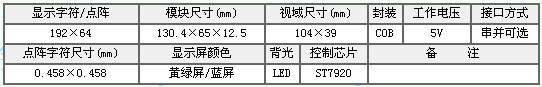 - 描述:品牌:金鵬 帶中文字庫(kù),模塊尺寸:130.4X65X12.5 視域尺寸:104X39 控制IC:7920,封裝COB 本液晶詳細(xì)資料在內(nèi)頁(yè)