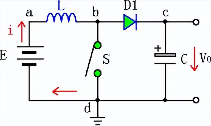 接下來(lái)通過(guò)開(kāi)關(guān)不斷地閉合、斷開(kāi),就可以不斷地輸出電壓U0,且該電壓U0高于電源電壓E,從而起到升壓的目的。