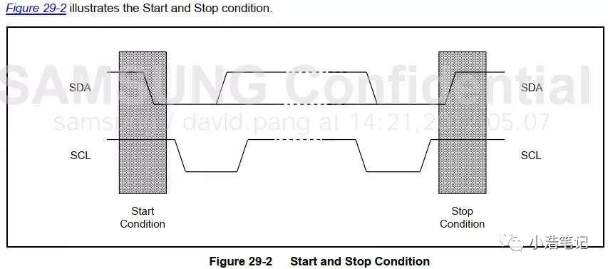 起始條件:當(dāng)IIC接口處于從模式時,要想數(shù)據(jù)傳輸,必須檢測SDA線上的起始條件,起始條件由主器件產(chǎn)生。當(dāng)SCL信號為高時,SDA產(chǎn)生一個由高變低的電平變化,即產(chǎn)生一個啟動信號。當(dāng)IIC總線上產(chǎn)生了啟動信號后,這條總線就被發(fā)出起始信號的主器件占用了,變成"忙"狀態(tài)。