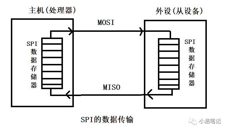 主機(jī)和外設(shè)都包含一個(gè)串行移位寄存器,主機(jī)通過它的SPI串行寄存器寫入一個(gè)字節(jié)來發(fā)起一次傳輸。寄存器是通過MOSI信號(hào)線將字節(jié)傳送給外設(shè),外設(shè)也將自己的移位寄存器中的內(nèi)容通過MISO信號(hào)線返回給主機(jī)。這樣,兩個(gè)移位寄存器中的內(nèi)容就被交換了。外設(shè)的寫操作和讀操作是同步完成的,因此SPI成為一個(gè)很有效的協(xié)議。