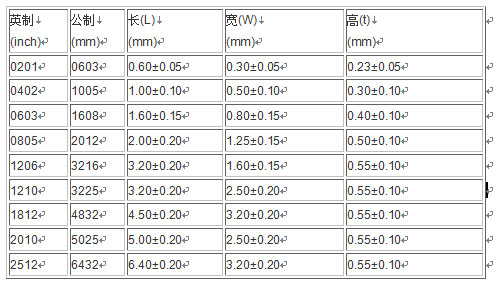 貼片電阻電容常見(jiàn)封裝有9種(電容指無(wú)級(jí)貼片),有英制和公制兩種表示方式。英制表示方法是采用4位數(shù)字表示的EIA(美國(guó)電子工業(yè)協(xié)會(huì))代碼,前兩位表示電阻或電容長(zhǎng)度,后兩位表示寬度,以英寸為單位。我們常說(shuō)的0805封裝就是指英制代碼。實(shí)際上公制很少用到,公制代碼也由4位數(shù)字表示,其單位為毫米,與英制類似。